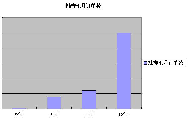 抽樣對比7月份訂單數(shù)數(shù)據(jù),成爆發(fā)性增長,2012年7月同比2011年7月增長近4倍。