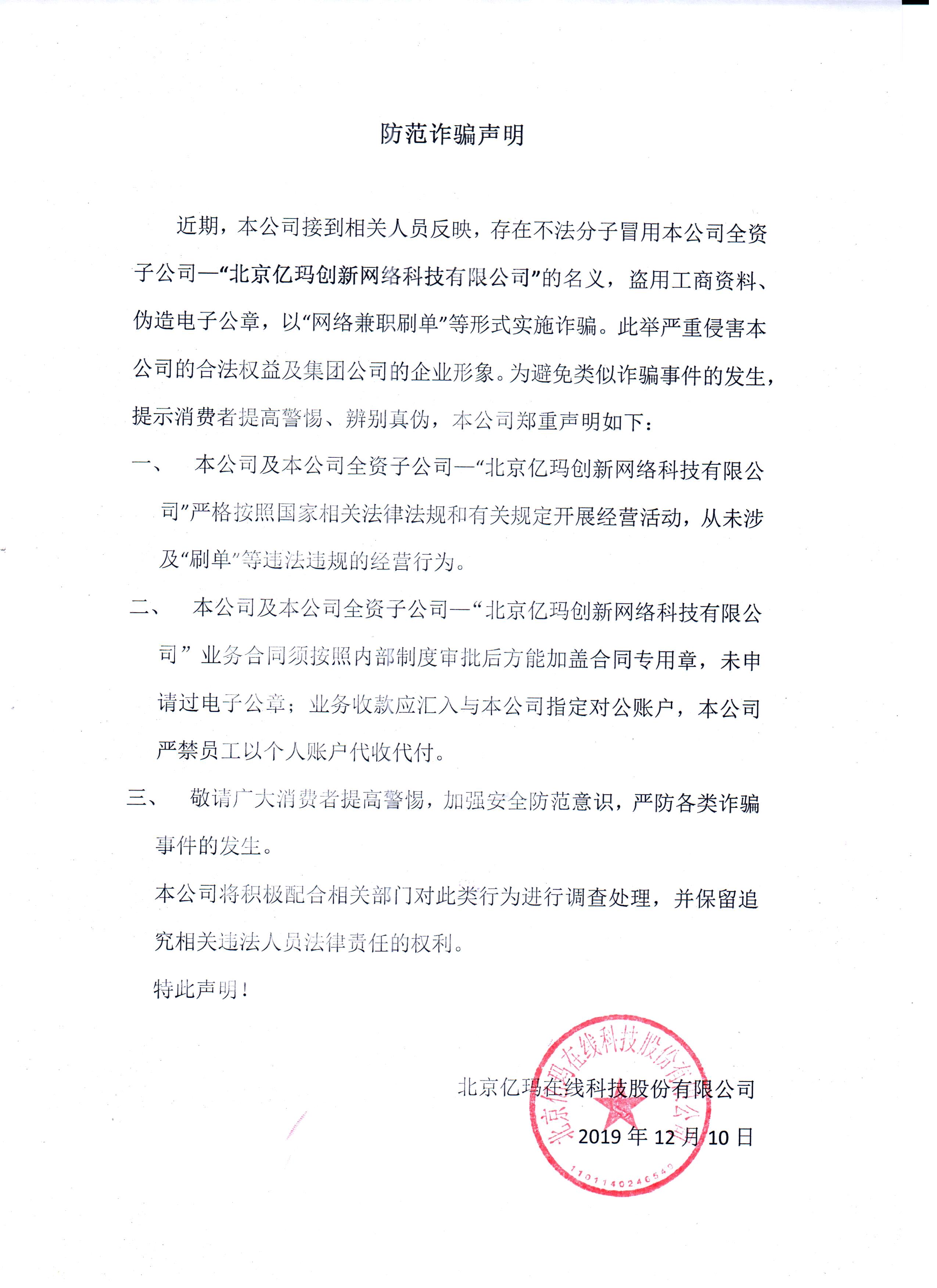 防范詐騙聲明
