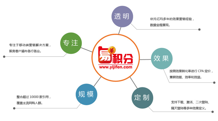 億,可提供應(yīng)用推薦、原生廣告、O2O廣告、富媒體廣告等多種廣告展現(xiàn)形式。易積分所服務(wù)的客戶分布廣泛,涵蓋了超過